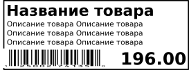 Заполнение ценника на картинке в приложении. Название товара берется из названия номенклатуры, Описание товара берется из допсвойства номенклатуры param_string. Штрихкод тоже есть в номенклатуре.
