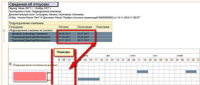 2. В диаграмму добавить колонку "периоды" (дата нач., дата конца) если периодов неск., то через запятую, рис. 2. Если не получится отдельной колонкой, то можно вместе с ФИО написать.