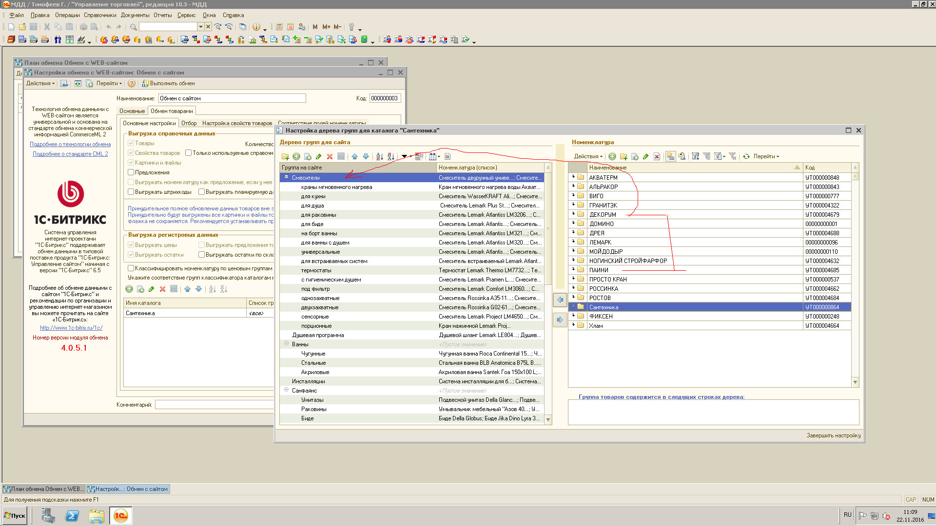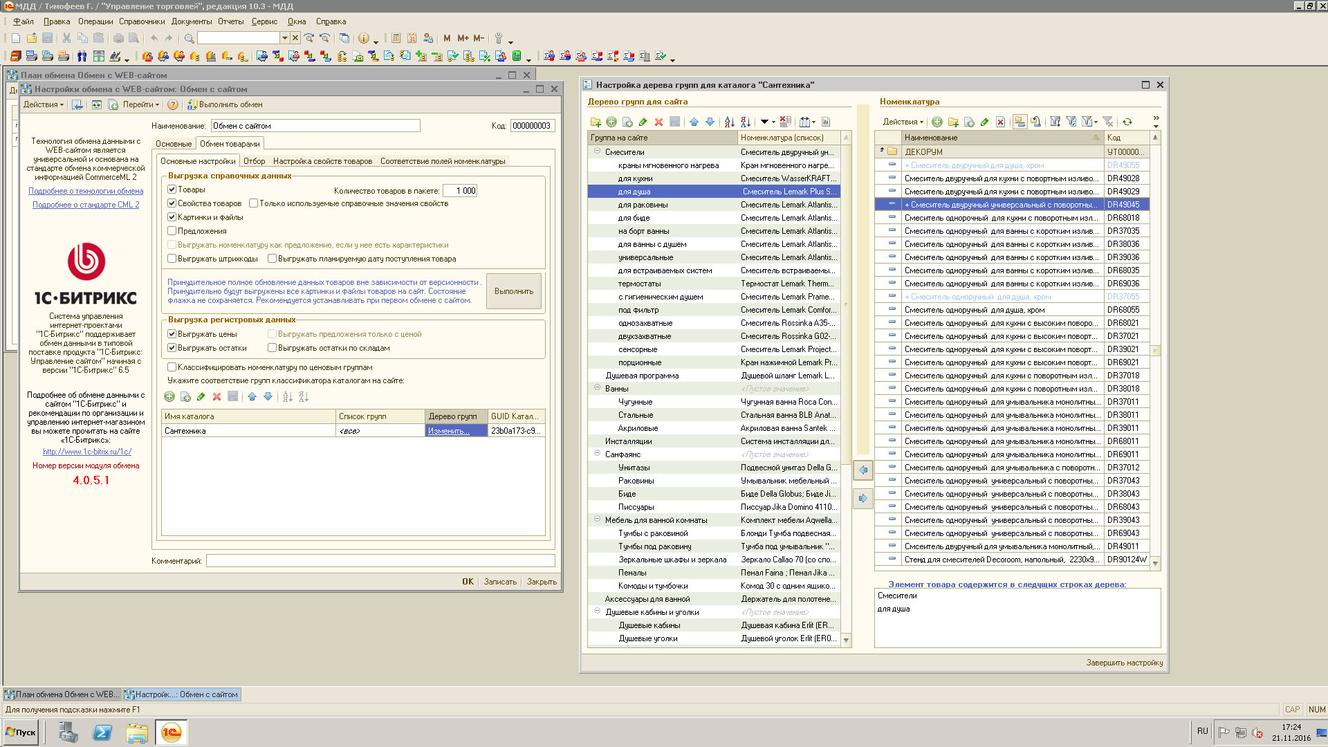 Еще прикрепляю скриншоты по работе деревом товара на сайте из 1С