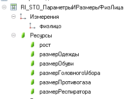 В типовую КА добавлены рег сведений (РС), в кот. хранятся размеры спец средств физ лица и справочник (Спр.), определяющий нормы выдачи спец средств (подчинён должности, сотруднику). См. картинки.