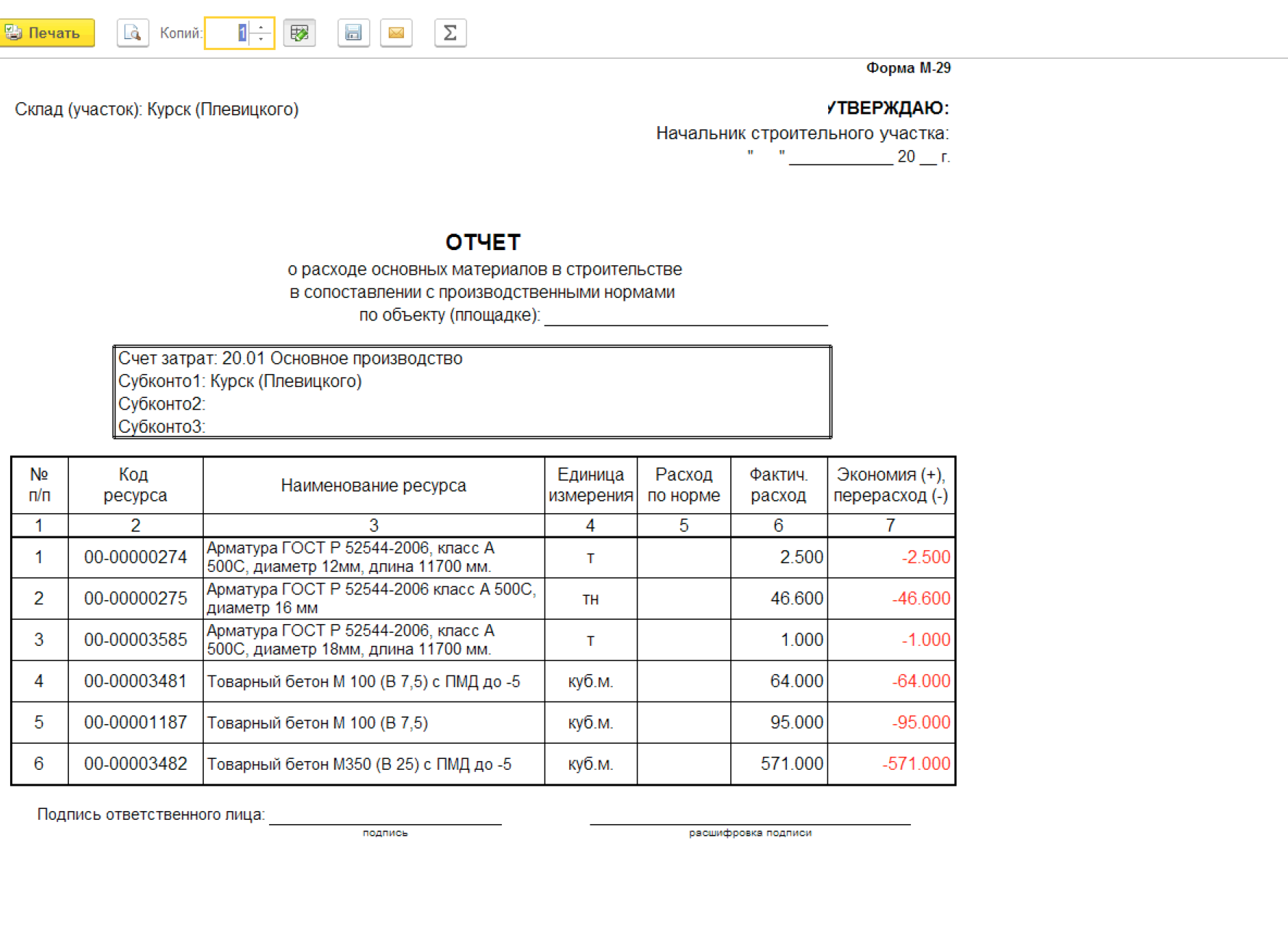 Нужно сделать внешнюю печатную форму для М29, и добавить туда суммы.