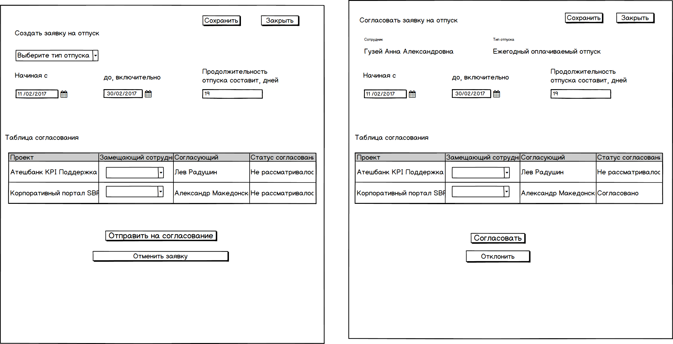 Есть бизнес-процесс, состоящий из двух шагов. Так как форма у бизнес процесса в принципе может быть ...только одна, нужно настроить доступность и автозаполнение полей в зависимости от точки маршрута. Для оценки масштабов прикрепляю мокапы, тз по запросу.