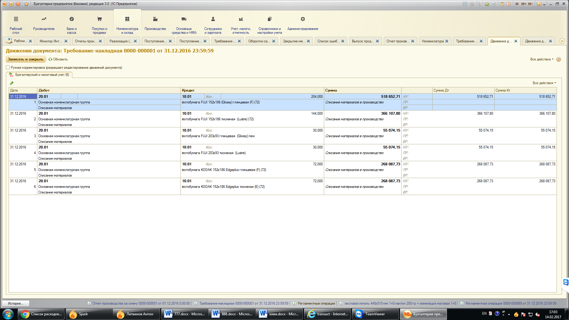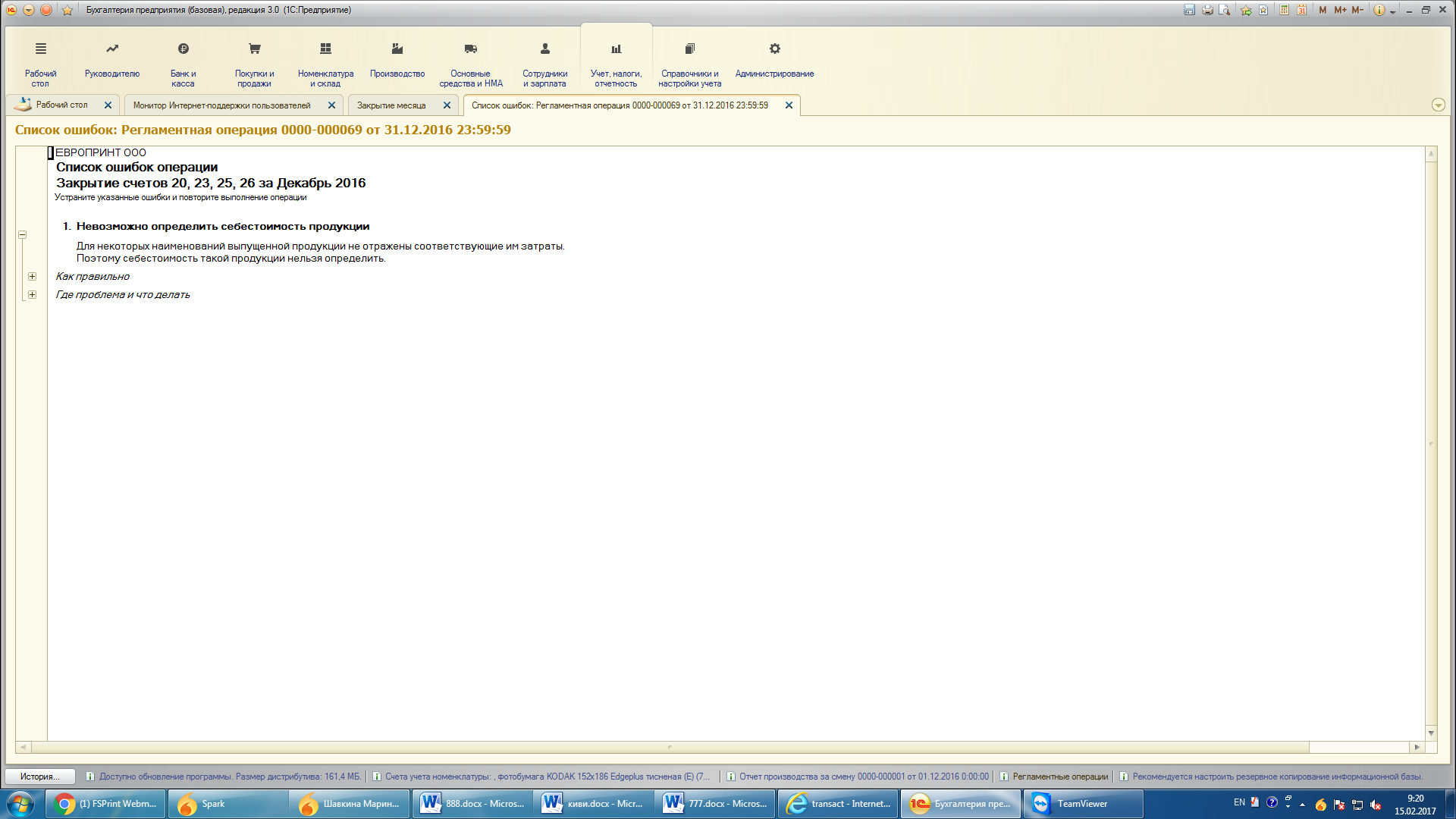 Проблема при проведении отчета производства.
