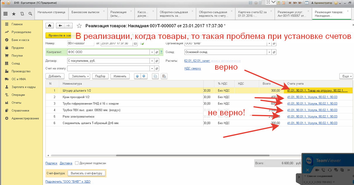 2) В документе РТУ, который приходит из УТ, если идет продажа товаров выставляет не верные счета учета