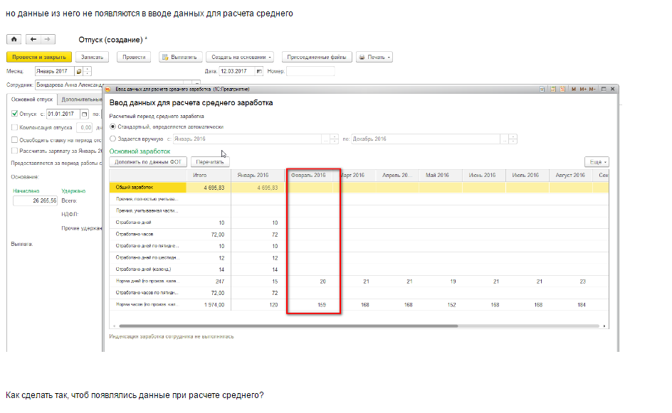 необходимо разобраться, почему не идут в расчет среднего данные с документа Перенос данных