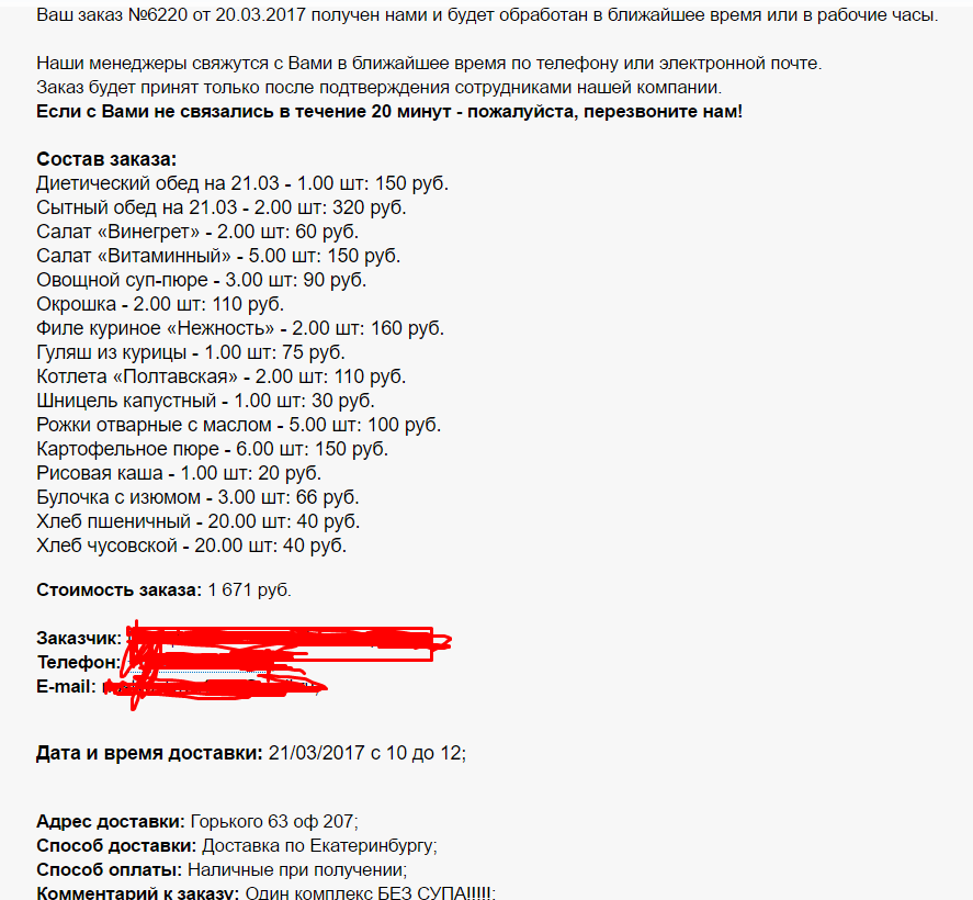 Создание заказа клиентов из письма почты