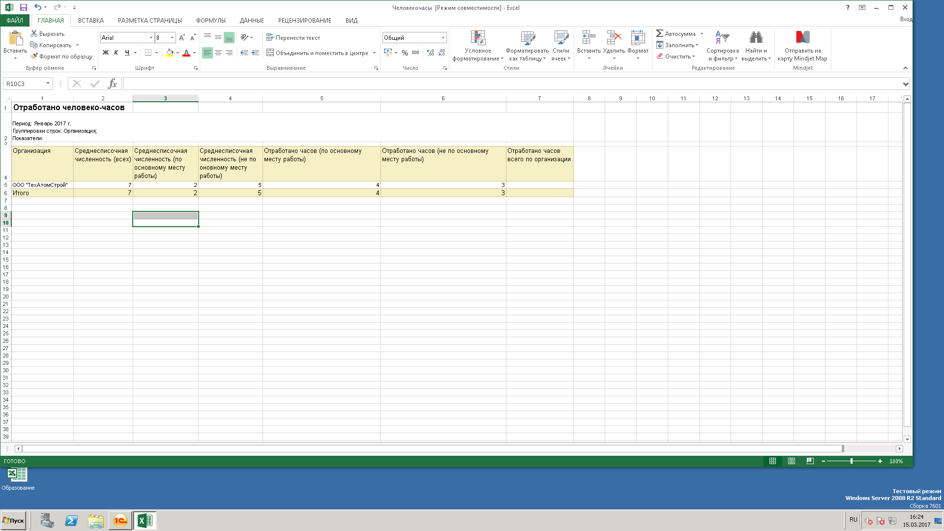 4. Отработано часов всего по организации