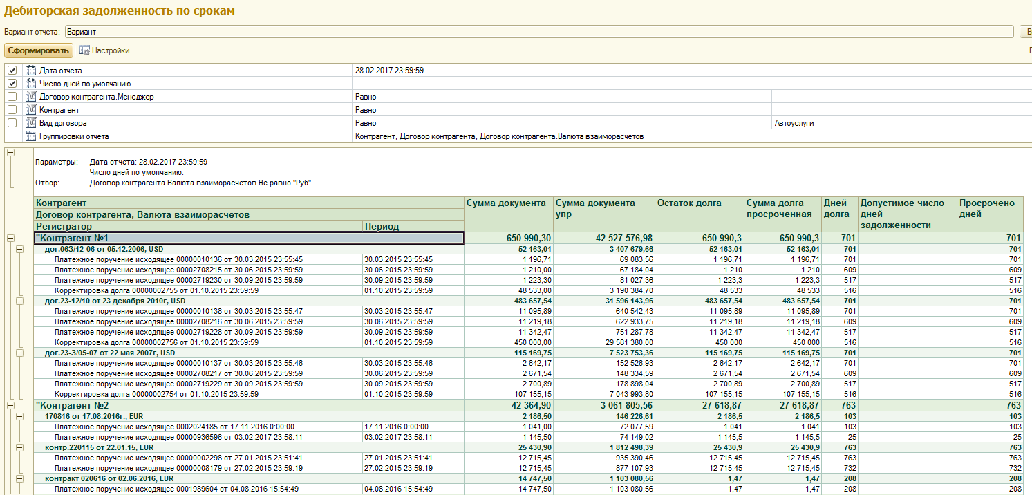 Есть внешний отчет на СКД "Дебиторская задолженность по срокам".