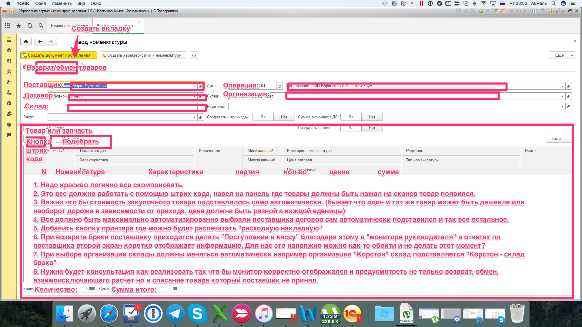 Нужно написать обработку по возврату товара, максимально ее упростить и автоматизировать.