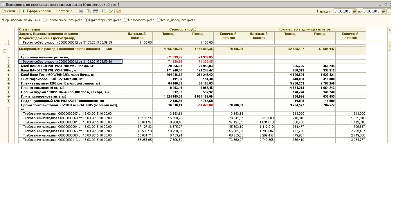 Проведение по партиям выполнялось, все предыдущие РСВ перепроводились, отриц. остатков по ОСВ, ведомости по партиям ТМЦ нет. Результат отчетов прилагается.