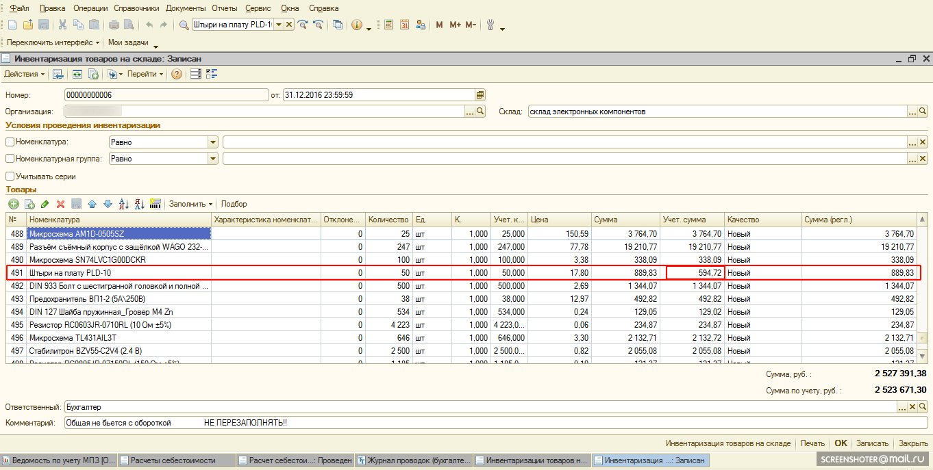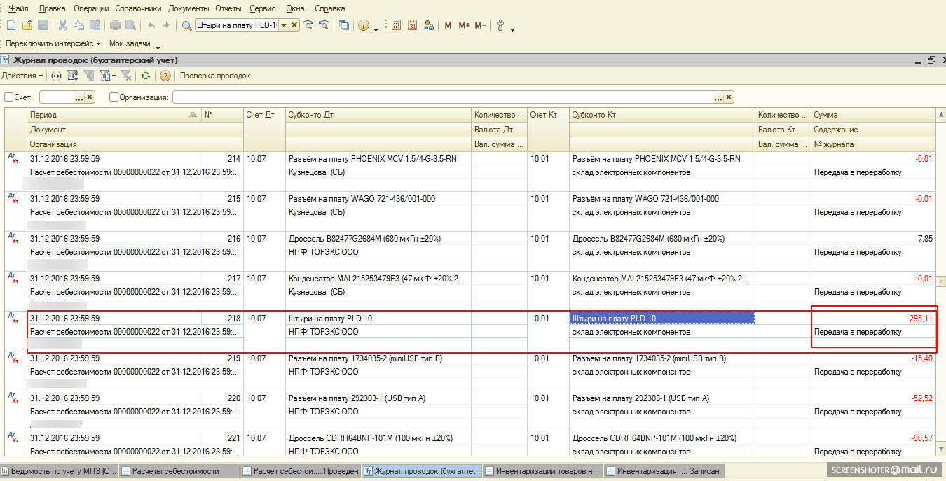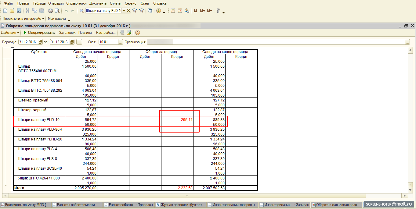 При закрытии месяца, документ Расчет себестоимости делает проводки по стоимости некоторых материалов с минусом. Эти минуса отражаются в ОСВ, также из за этого некорректно заполняется документ Инвентаризация товаров на складе по минусовым позициям. Примерная проблема на скринах.
