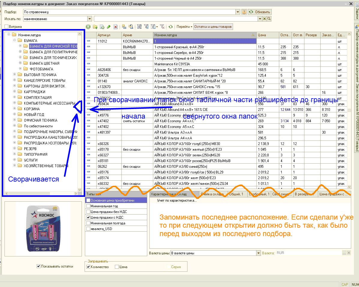 1. Нужно сделать заезжающей левую панель и сохранение позиции панели с остатками, как на скриншотах.