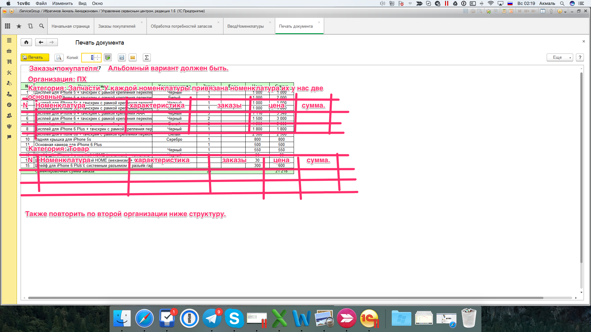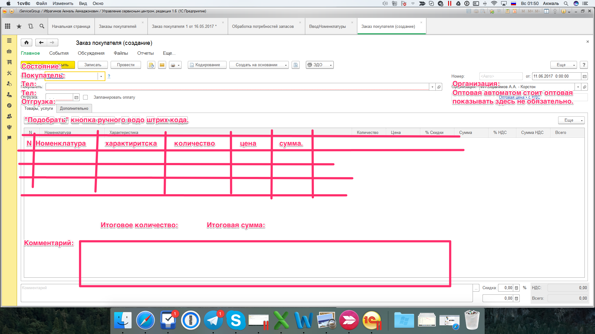 Сделать обработку по заказам покупателя УНФ УСЦ.