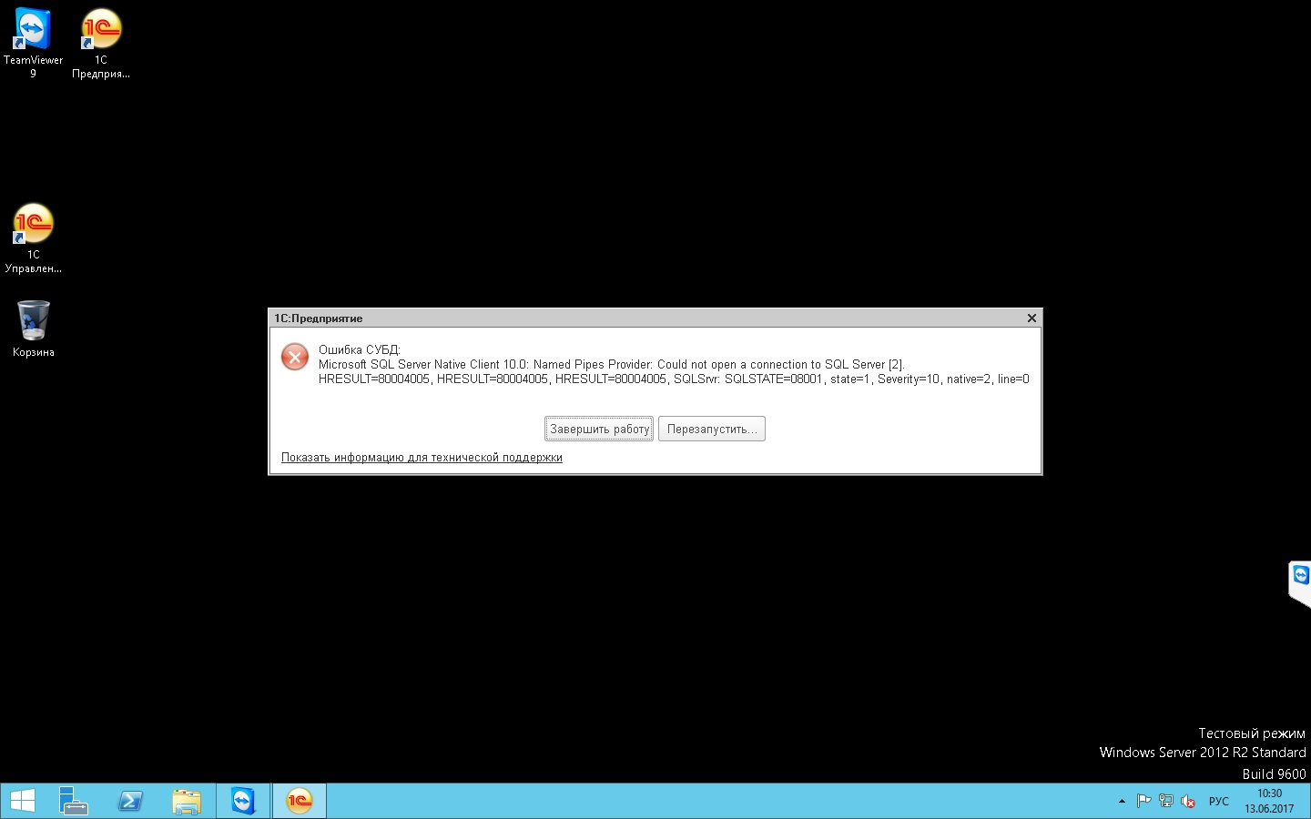 Ошибка при подключении на 1С сервер