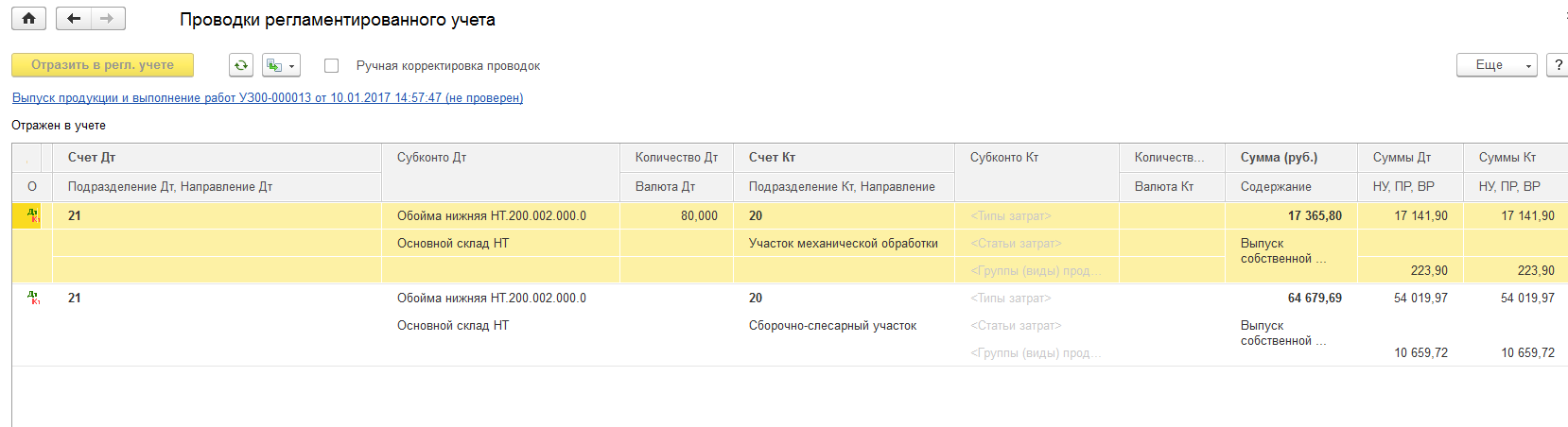 При выпуске продукции формируются непонятные проводки. Появляется ВР. Скрин во вложении, помогите разобраться, куда "копать" :)) спасибо!