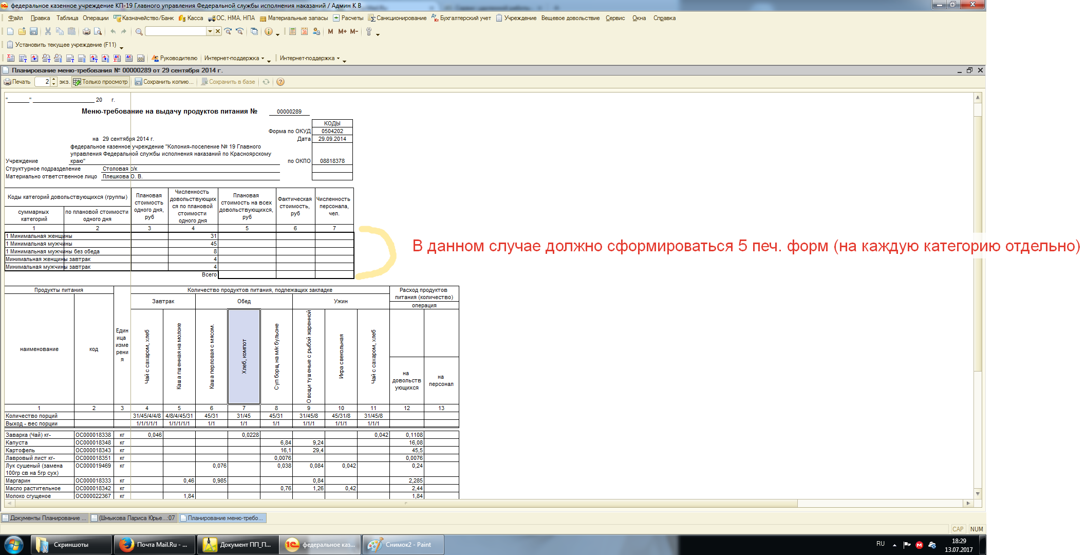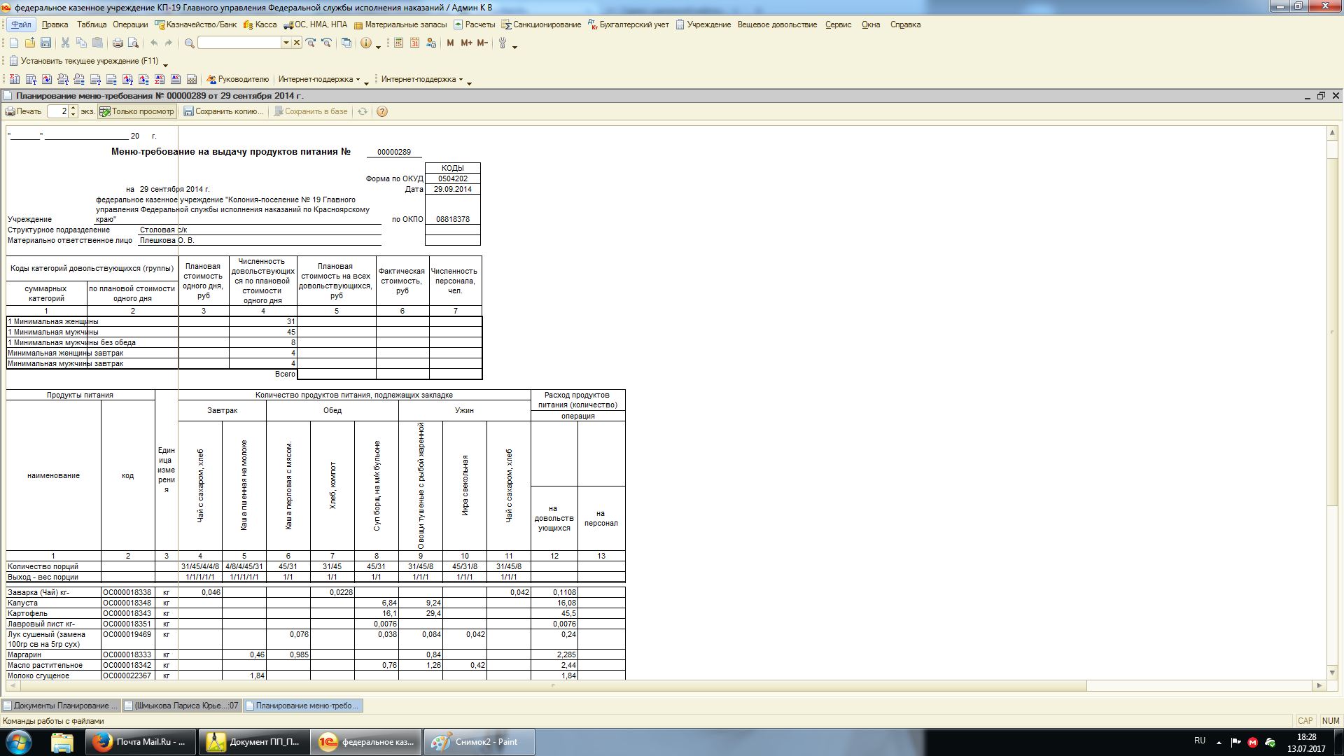 Требуется доработка печатной формы "Планирование меню-требования". Подробности во вложении. Базу могу выслать на почту. (Бухгалтерия государственного учреждения ред 1.0)