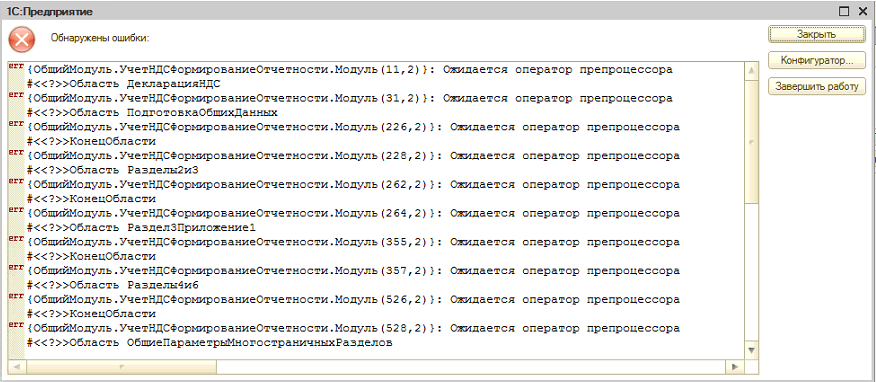 При закрытии периода ругается на резервы и при формировании декларации выдает ошибки.