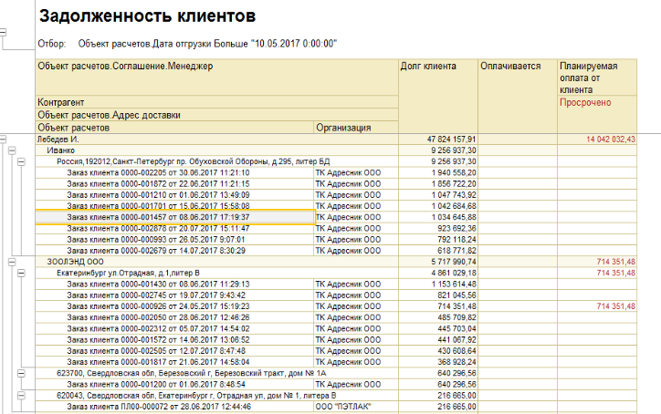 Отчет СостояниеРасчетовСКлиентами.