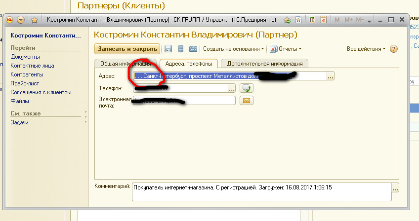 reg_field_value – строка содержащая адрес, т.к индекс, регион, город по отдельности не вставляются и данные приходят в одной строке то перед адресом нужно убрать запятые.