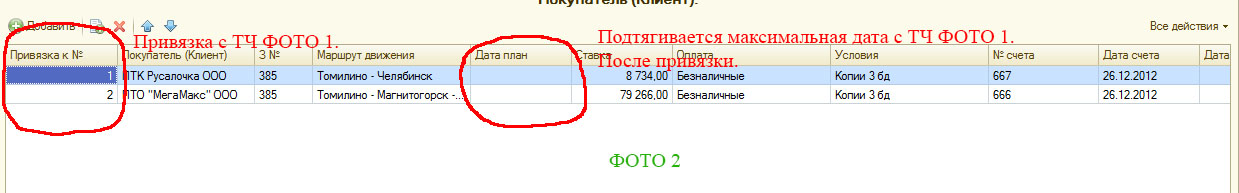 Создан документ ЗаявкаПеревозчику. Требуется в этом документе связать 2 табличные части, чтобы можно было связывать грузополучателя и грузоотправителя (скорее всего через КлючСтроки, как это сделано в документе ОтчетКомиссионераОПродажах, связь 2ух табличных частей ПокупателиТовары и Товары). И нужно создать ТЧ на которую можно переходить по клику на поле + отражение в этом поле номеров документов, а в 2ух соседних столбцах рекламации и коментарий. ТЧ на ФОТО 3.