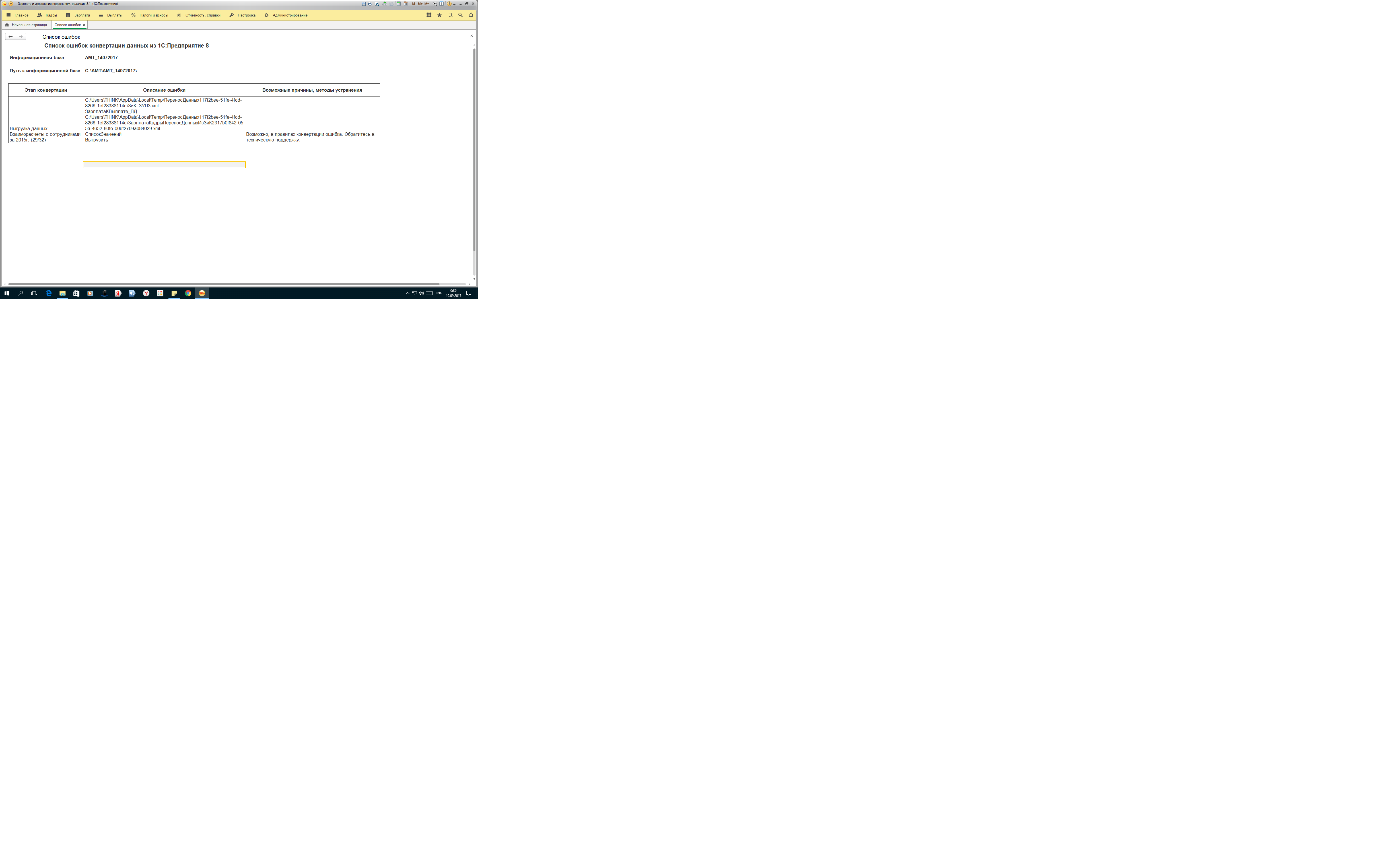 При типовом переносе данных из программы "Зарплата и кадры 7.7" в "ЗУП 3.1" на 2е сутки выдает ошибку и перенос останавливается (скрин прилагаю). Нужен человек, знающий в чем ошибка для ее устранения.
