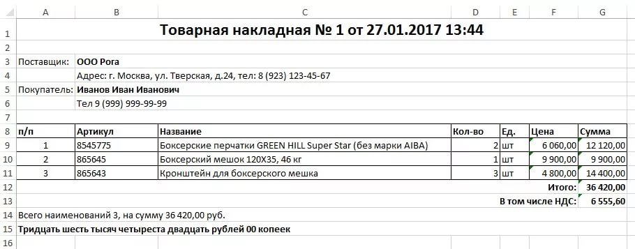 Упрощенная форма накладной