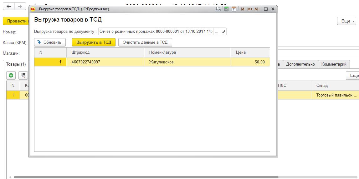 Требуется доработка обработки для работы с ТСД Opticon. Необходимо выгружать данные (шк, наименование, количество) из отчета о розничных продажах. Стандартная обработка не дает выгрузить количество. Терминал подключен через драйвер АТОЛ 8.14. Используемая конфигурация Розница 2.2.6.33 БАЗОВАЯ