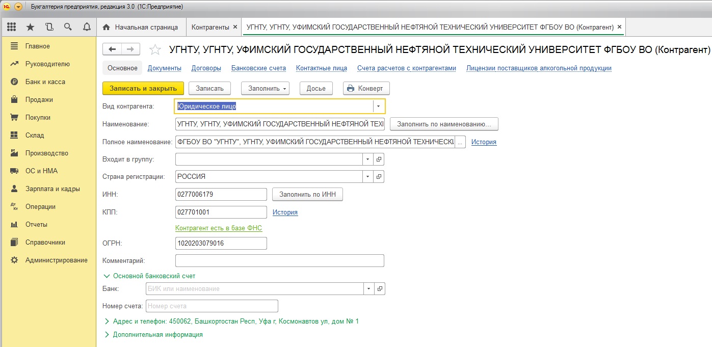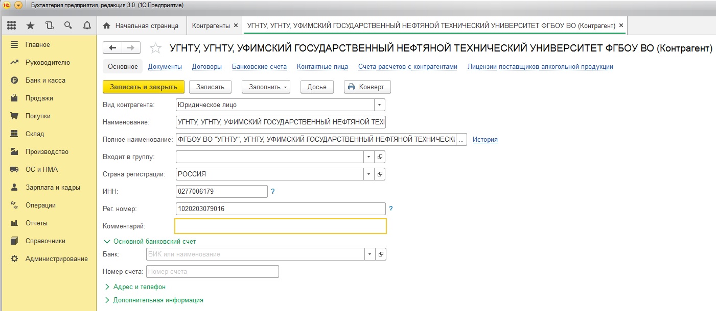 В базе приёмнике в справочнике Контрагенты в перенесённых контрагентах в карточке контрагента отсутствует возможность заполнения по ИНН (Вложение рис. 1.).