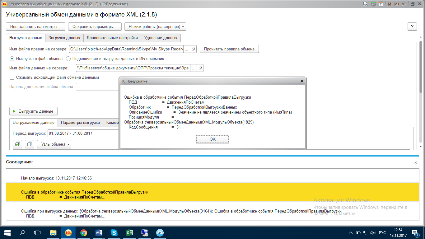 Требуется исправление ошибки в правилах обмена между 1С бухгалтерия 3.0 и 1С комплексная автоматизация 2. Скрин ошибки и файл правил прикрепляются