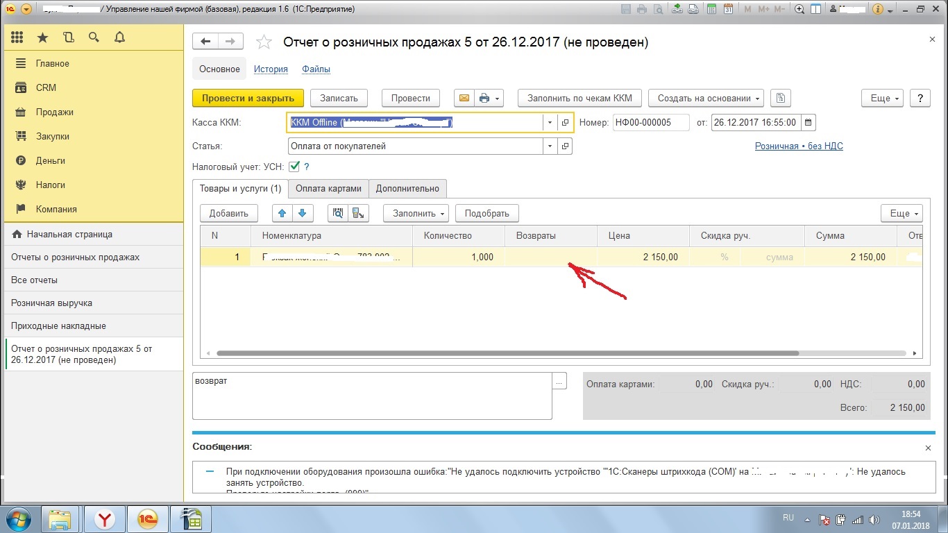 В одном из таких отчетов о розничных продажах появился первый возврат. В колонке количество (-1) в колонке возврат -пусто. Я бы поправил в ручную, но колонку возврат не дает редактировать (права администратора). Дает редактировать все колонки кроме нужной. Как правильно оформить возврат? Может где-то не включена галочка которая дает возможность корректировки нужной колонки? Или тут ничего не сделать только путем правки файликов.