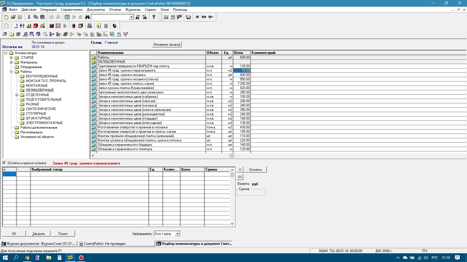 В подборе номенклатуры, визуально меняется цифра в колонке при клике на неё. Если надо, то могу видео заснять.