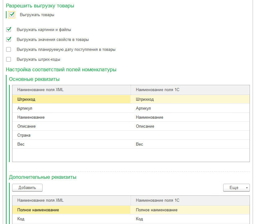 Есть УТ 11.2.3.108 и сайт на 1С-Битрикс: Управление сайтом 17.0.15. Номенклатура выгружается, но почему-то только наименование и описание. А артикул, страна и т.д. - нет. Хотя соответствие вроде как настроено. Надо сделать так, чтобы выгружались свойства: