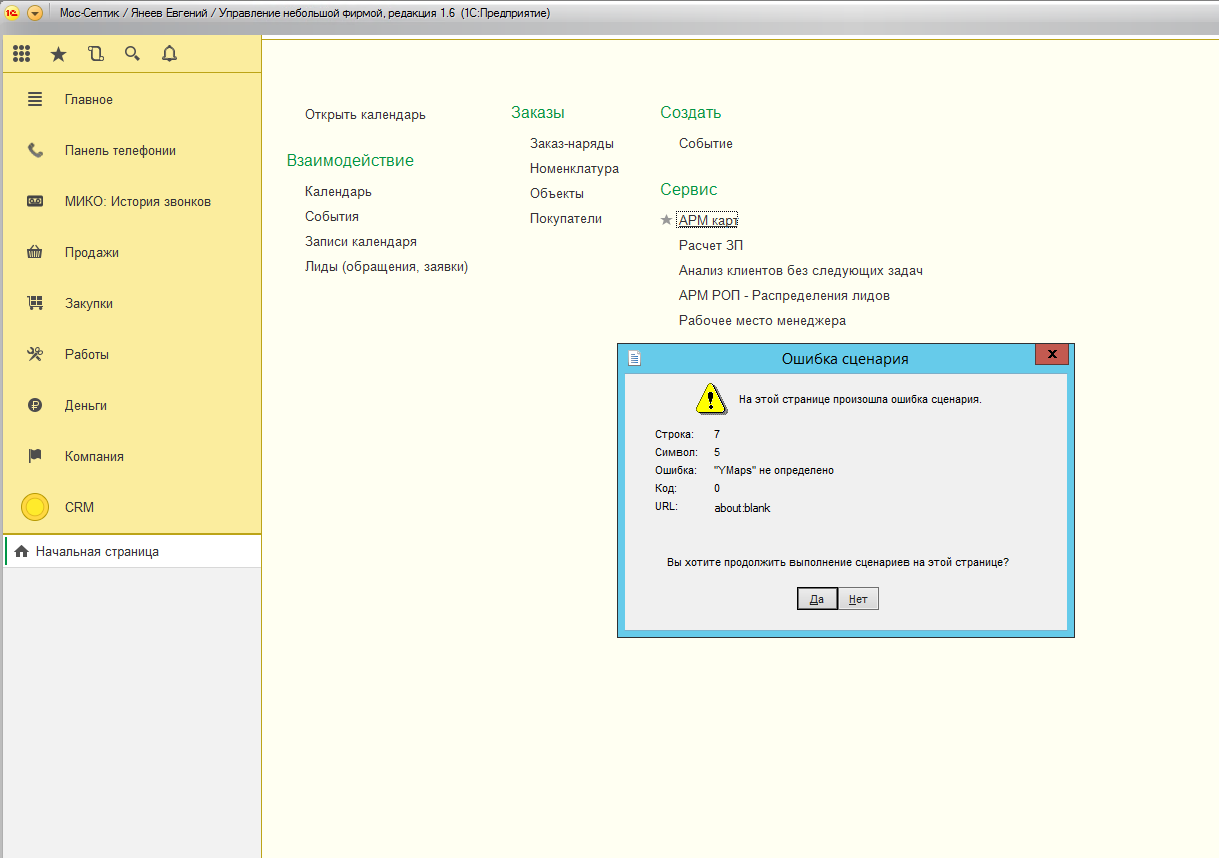 Убрать ошибку в 1С УНФ в самописном блоке обмена данными 1С и яндекс картами