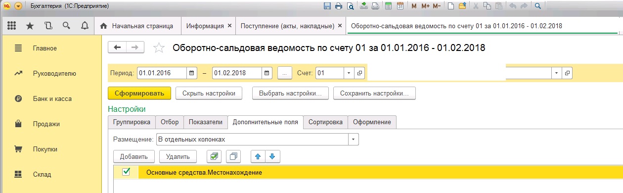 добавить в оборотно сальдовую по счету 01 - в доп поля - Дату принятия к учету