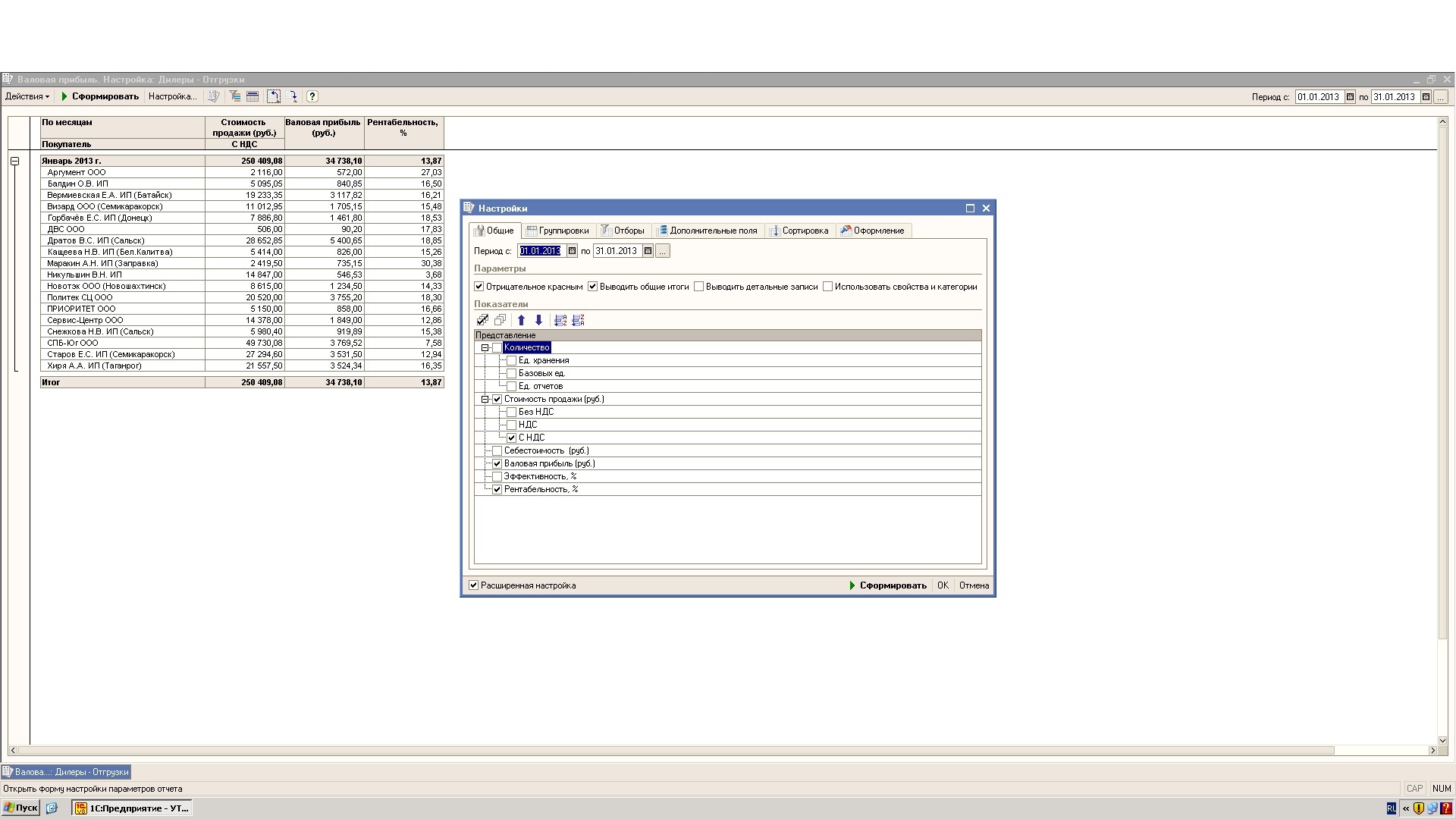 Прикрепляю настройки отчета "Валовая прибыль", что бы можно было сориентироваться при тестировании.
