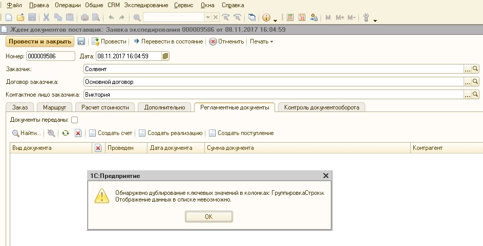 Есть база БИТ: Экспедирование 3.5 для Бухгалтерии предприятия, редакция 2.0 (2.0.30.8/3.5.5.11), в разделе Экспедирование-Журнал заявок у одного заказчика за две даты во вкладке Регламентные документы вылетает ошибка: