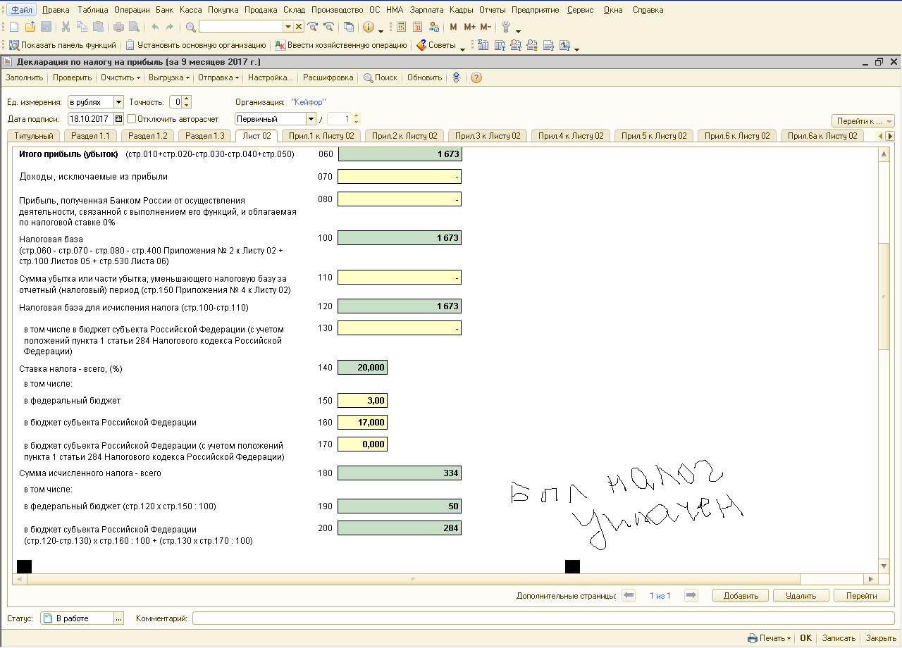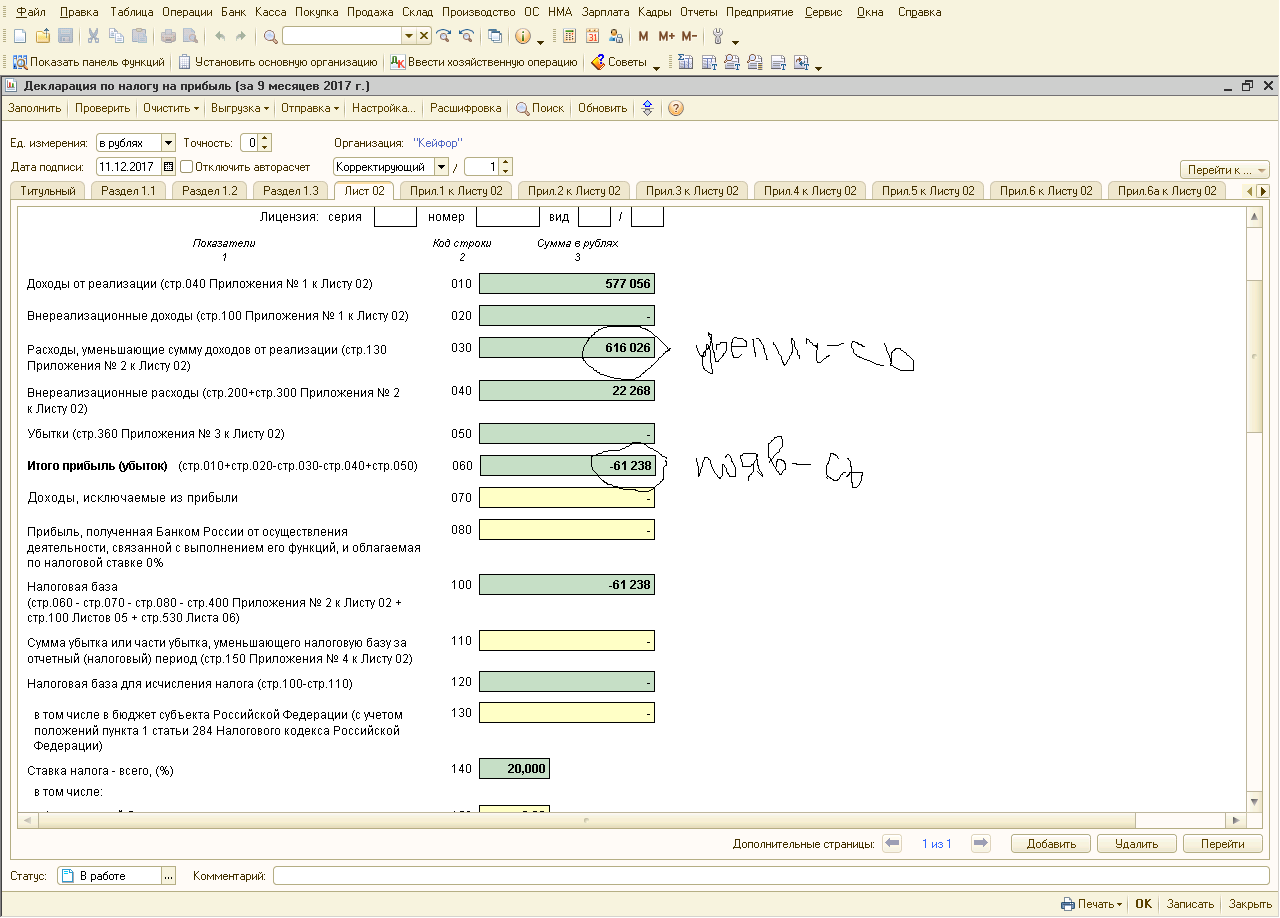 В декларации по прибыли увеличилась строка 030, сумма на 62911р увеличилась