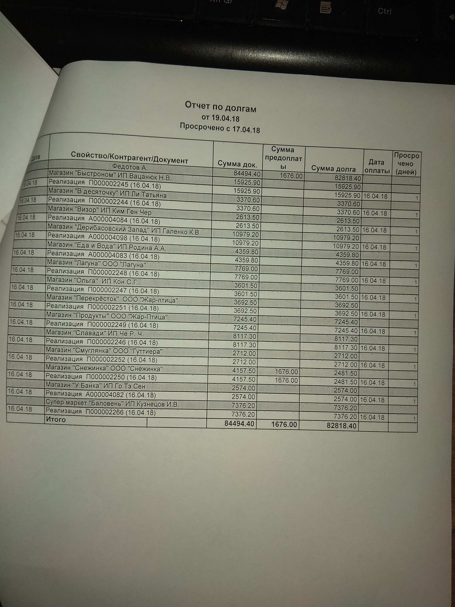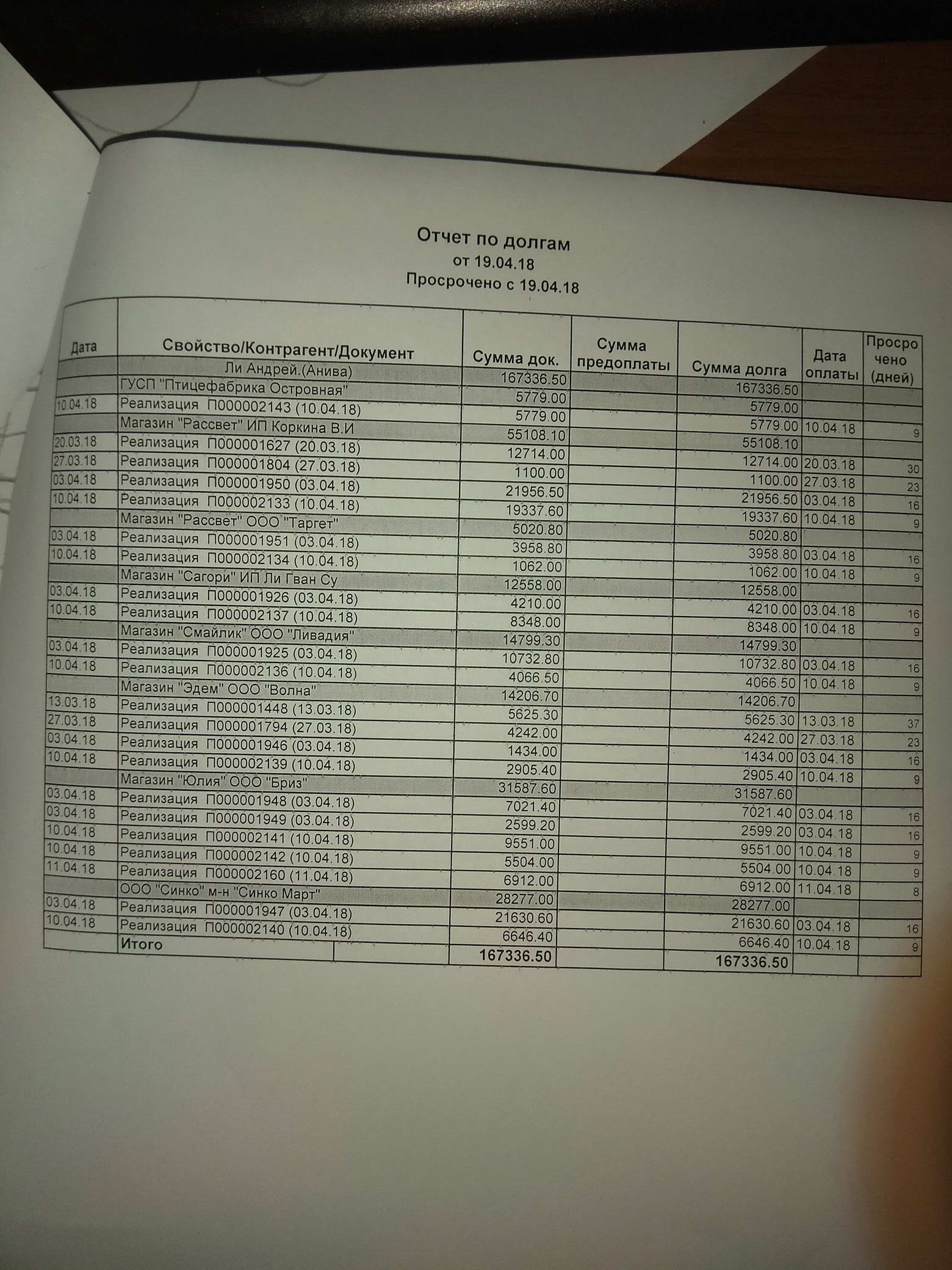 3. Отчет дебиторка с днями задолженности и документами отгрузки. Фото прилагается