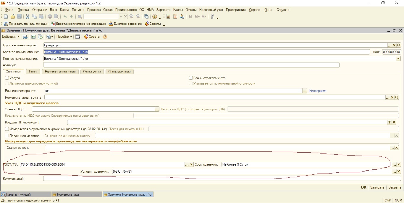 Внешняя печатная форма для документа Реализация товаров, по нашему образцу (Декларация производителя) с добавлением 3-х полей из карточки Номенклатуры (добавленные ГОСТ, Условия Хранения, Сроки Хранения). Конфигурация Бухгалтерия для Украины 1.2.41.2