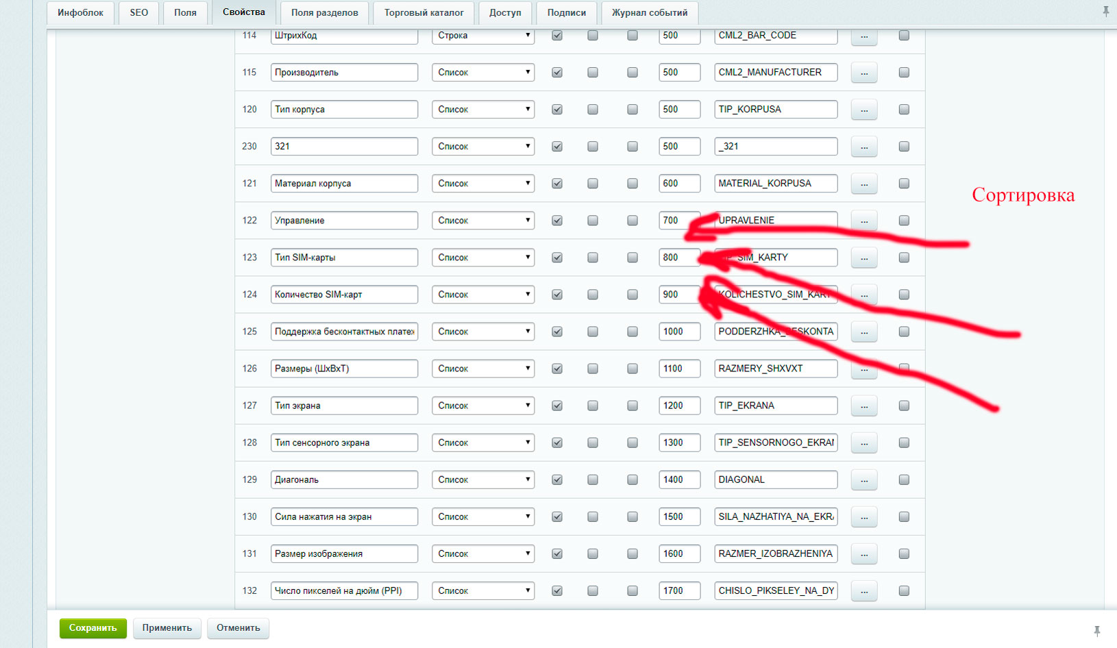 Сортировать свойства в 1с и выгружать в этом же порядке на сайт