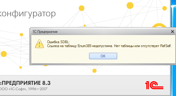 Ошибка при обновлении УТ 11 - Ссылка на таблицу enum385 недопустима нет таблицы или отсутствует refself