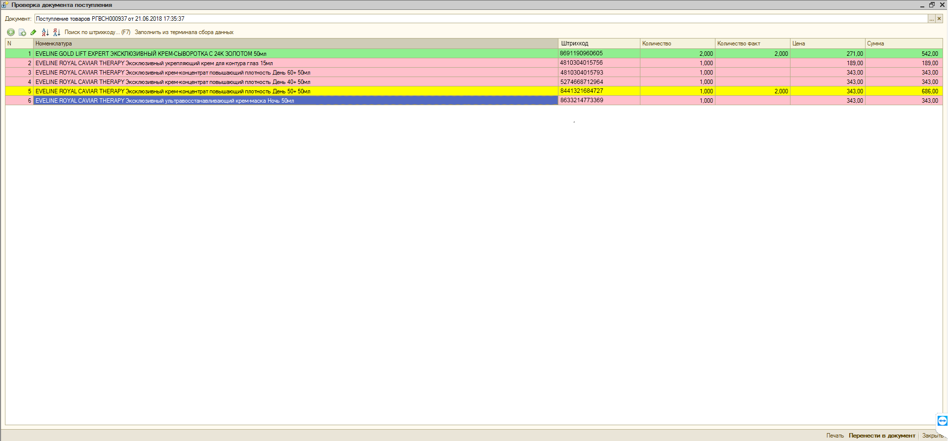Нужно создать обработку контроля поступления товаров, которая загружает документ "Поступление товаров" и по итогу проверки при необходимости, переносит результат в него, на картинке пример обработки.