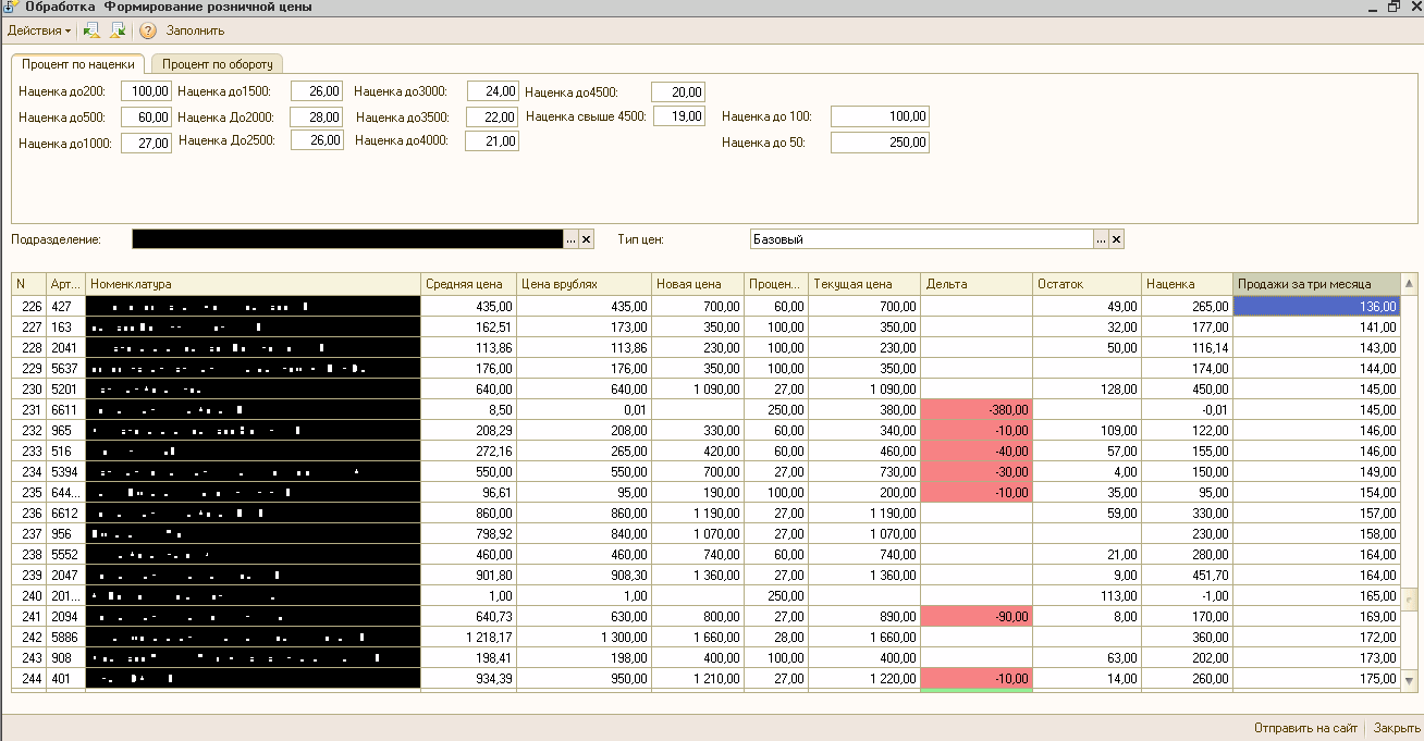Переделать форму (самописную) установки цен номенклатуры.