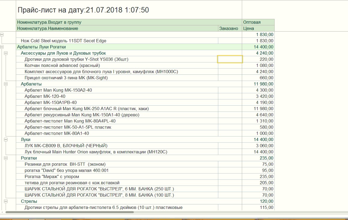 2. Добавить столбец "Общей стоимости" в прайс лист. Столбец должен заполняться автоматически и рассчитывать стоимость позиции в соответствие с выбранным количеством (т.е. умножать цену позиции на указанное количество).