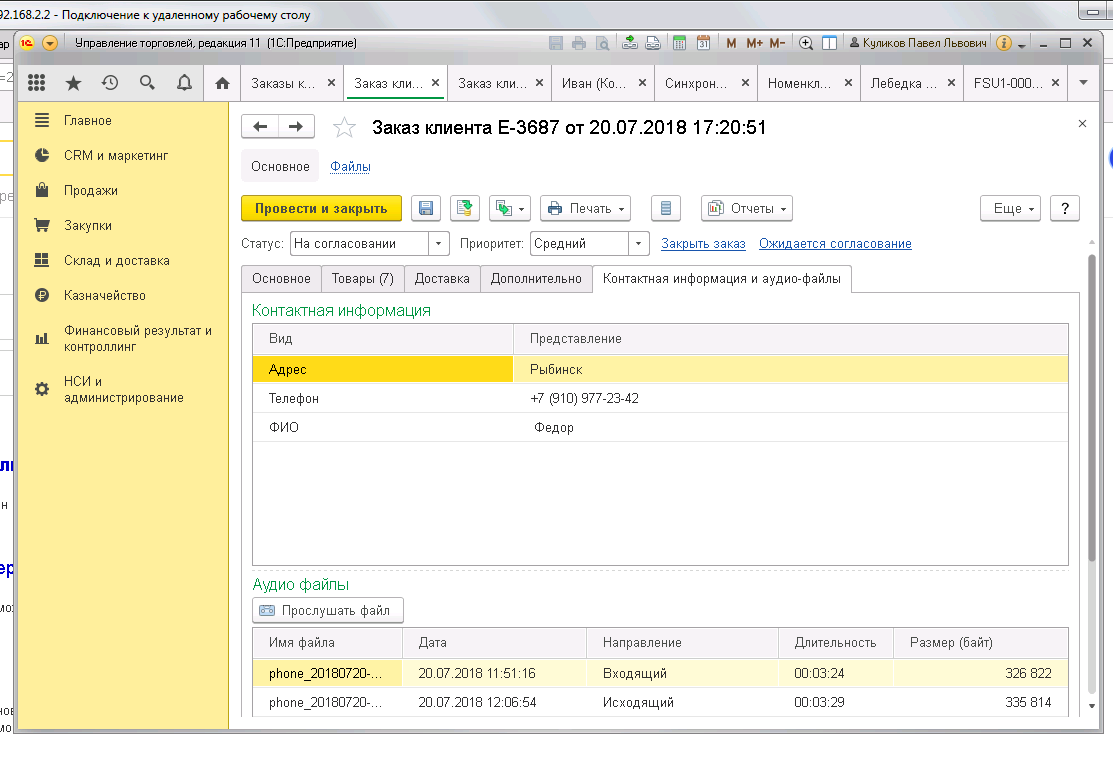 Нужно исправить это недостаток. Выводится должны контакты того ИВАНа, который является контрагентом данного заказа.