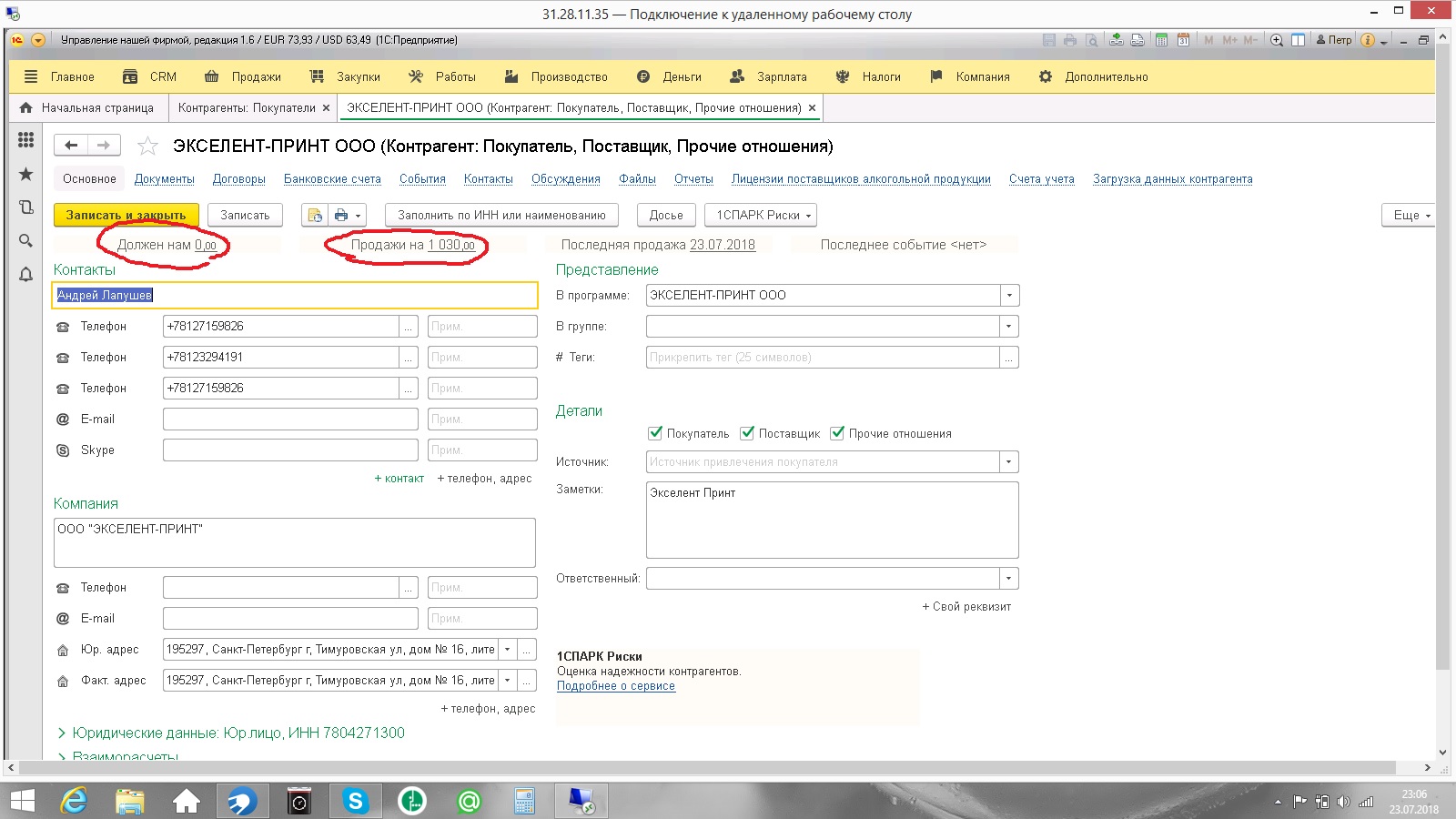 2) Менеджеры - видят баланс по конкретному контрагенту(в "Заявке покупателя", во вложении отмечено красным), но не могут делать отчеты по всем контрагентам и балансу фирмы.
