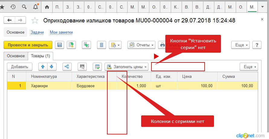 1. Как указать серии по излишкам, недостачам и пересорту?