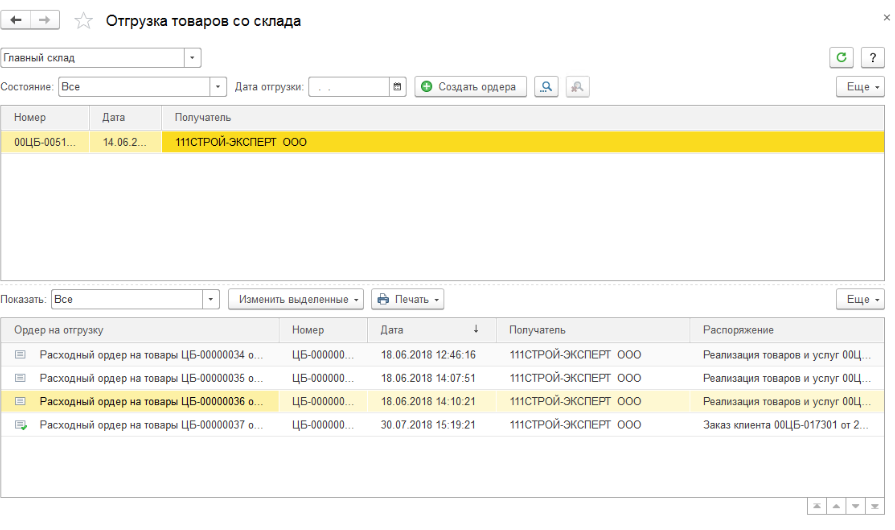 - отгрузки товаров (раздел Склад и доставка),