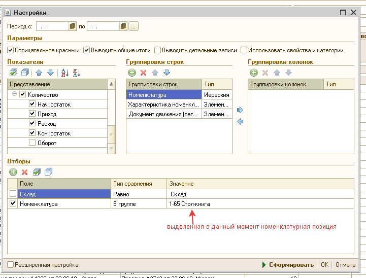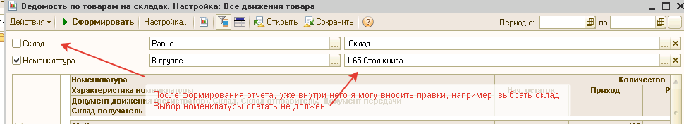В справочнике Номенклатура надо добавить кнопку, при нажатии на нее должен выскакивать отчет «Ведомость по товарам на складе» с определенными стандартными настройками на выделенную активную в данный момент номенклатуру. Выделенная в данный момент характеристика роли не играет.