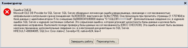 Есть распределенная база Розница 1, работающая на платформе 8.1 в клиент-серверном режиме на MS SQL. При попытке сделать архивную копию в центральной базе появляется ошибка, как на фото во вложении. Тестирование и исправление не помогает, база вылетает с ошибкой. Нужно починить базу с сохранением настроек обмена РИБ. Интересуют сроки и стоимость.